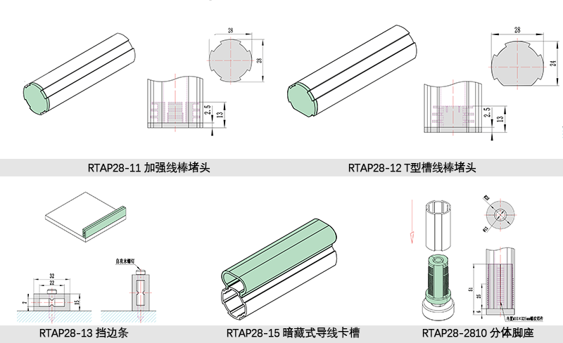 RTAP28-12 | T型槽线棒堵头 | PVC | |||